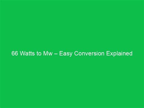 The key to converting megawatts to watts is knowing the conversion factor. As we mentioned earlier, 1 MW is equal to 1,000,000 W. So, the conversion factor is 1,000,000. This means that to convert any value from MW to W, you simply multiply the MW value by 1,000,000. Easy peasy!