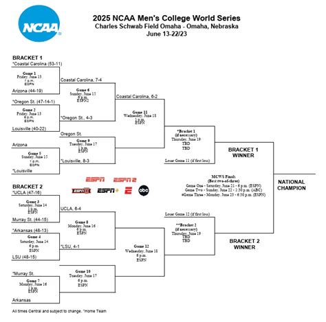 Alright, baseball fanatics! Are you ready to dive deep into the world of college baseball and get a sneak peek at the 2025 College World Series (CWS) bracket predictions ? We’re talking about the ultimate showdown in Omaha, Nebraska, where the best college teams battle it out for the national championship. It’s the pinnacle of the college baseball season, and let’s be honest, it’s a blast to try and predict who’ll be holding the trophy high. Now, predicting the future is tricky, and we can’t guarantee anything, but we’re going to break down the key contenders, analyze their strengths and weaknesses, and give you our best shot at forecasting the bracket. Get ready for some serious baseball talk, guys! It’s going to be a wild ride filled with potential upsets, dominant pitching performances, and clutch hitting. Let’s start with the basics, shall we? The College World Series is a double-elimination tournament, meaning a team has to lose twice to be eliminated. This format adds a layer of excitement and makes every game crucial. Sixteen teams initially compete in the NCAA Division I Baseball Tournament, with the eight remaining teams advancing to the College World Series. The teams are divided into two brackets of four teams, with the winners of each bracket facing off in a best-of-three championship series. The atmosphere in Omaha is electric, and the energy is contagious. It’s a true celebration of college baseball. This year, we’re going to focus on the key factors and teams to keep in mind, we’re not just throwing darts here. We’re talking about comprehensive analysis to help you become a college baseball expert, or at least sound like one. So, grab your peanuts and cracker jacks, and let’s get into the heart of the predictions .