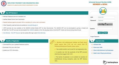 • Enter your UAN, member ID, or Aadhaar, along with your personal details.