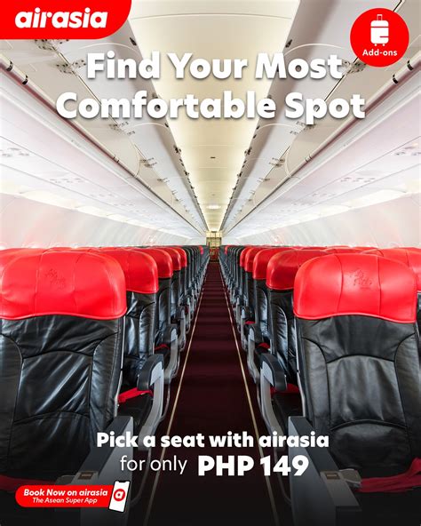 A2: Yes, you can select and purchase a specific seat during the booking process or later via the ‘Manage My Booking’ section on the AirAsia website. If you don’t select and pay for a seat, one will be assigned to you randomly free of charge during check-in. For added comfort, consider booking a ‘Hot Seat’ which offers extra legroom and is usually located in the front section of the aircraft.