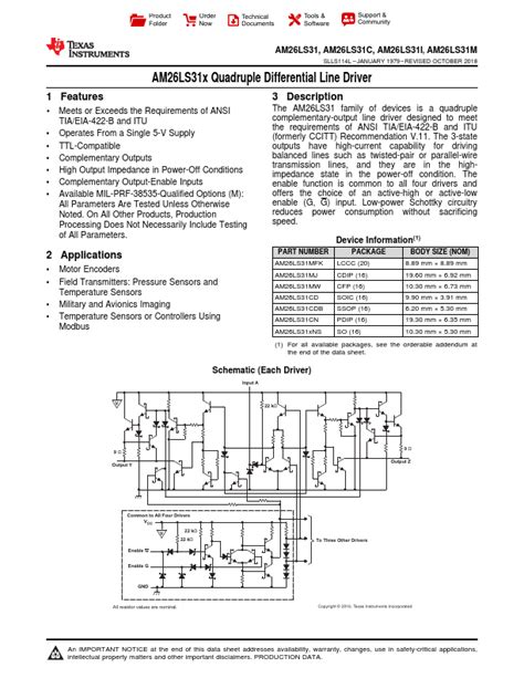Hey guys! Today, we’re diving deep into a component that might seem a bit niche but is an absolute workhorse in the world of electronics: the AM26LS31 . If you’re into digital communications, interfacing different systems, or just building some seriously cool tech, you’ve probably encountered or will encounter this little gem. The AM26LS31 is a quad differential line driver , and believe me, it packs a punch. It’s designed to handle some pretty demanding tasks, making sure your signals get where they need to go, cleanly and reliably . We’re talking about driving those signals across noisy environments or over longer distances where weaker signals would just get lost. So, buckle up as we explore what makes the AM26LS31 so special, its key features, and why it’s a go-to choice for engineers and hobbyists alike. We’ll break down its technical specs in a way that’s easy to digest, look at some practical applications, and even touch upon alternatives, so you can make informed decisions for your next project. Get ready to become an AM26LS31 expert!