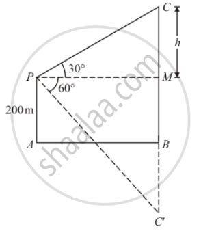 Let’s re-frame with typical angles: Suppose angle of elevation of cloud C from O (10m above A) is α . Horizontal distance AP = x. Height of cloud above lake = H. tan(α) = (H - 10) / x .