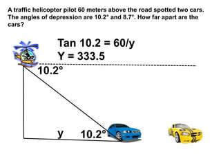 4. Equation: tan(angle of depression) = 50 / 100