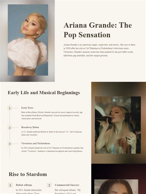 Hey guys! Let’s dive into the incredible world of Ariana Grande , a true pop powerhouse who has taken the music industry by storm. From her early days on Nickelodeon to becoming one of the biggest global superstars, her journey is nothing short of inspiring. We’re talking about a voice that can hit notes you didn’t even know existed, catchy tunes that get stuck in your head for days, and a stage presence that’s simply electrifying. In this article, we’ll explore what makes Ariana Grande such a dominant force in music today, touching on her evolution as an artist, her most iconic hits, and the undeniable impact she’s had on pop culture. Get ready to be amazed by the talent and dedication of this phenomenal artist!