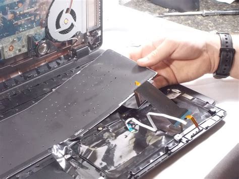 Once the bottom case is removed, you’ll see the internal components of your laptop. Locate the keyboard connector on the motherboard. It’s usually a small, flat connector with a ribbon cable attached to it. Gently lift the retaining clip on the connector and carefully disconnect the ribbon cable. Be extra careful not to damage the connector or the ribbon cable, as they are very delicate.