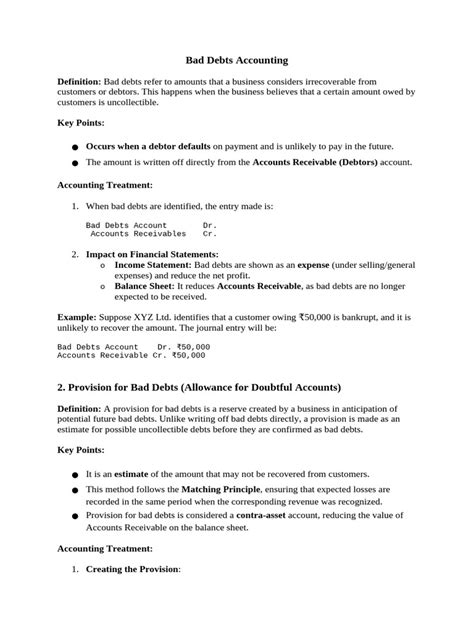 Hey guys! Let’s dive into the nitty-gritty of bad debts accounting . It sounds a bit scary, right? But trust me, it’s a crucial concept for any business, big or small. Basically, bad debts accounting deals with those situations where a customer or client just doesn’t pay you for the goods or services you’ve already provided. Yep, it happens to the best of us! When this happens, that unpaid amount becomes a bad debt , and accounting principles dictate how you should handle it on your financial statements. Ignoring it isn’t an option, as it can seriously mess with your profit margins and the overall financial health of your business. So, understanding how to account for bad debts is like having a secret weapon in your financial arsenal. It helps you maintain accurate records, make informed business decisions, and present a true and fair view of your company’s financial performance. We’ll break down the methods, the implications, and why getting this right is so darn important. Get ready to demystify bad debts accounting and boost your financial savvy!