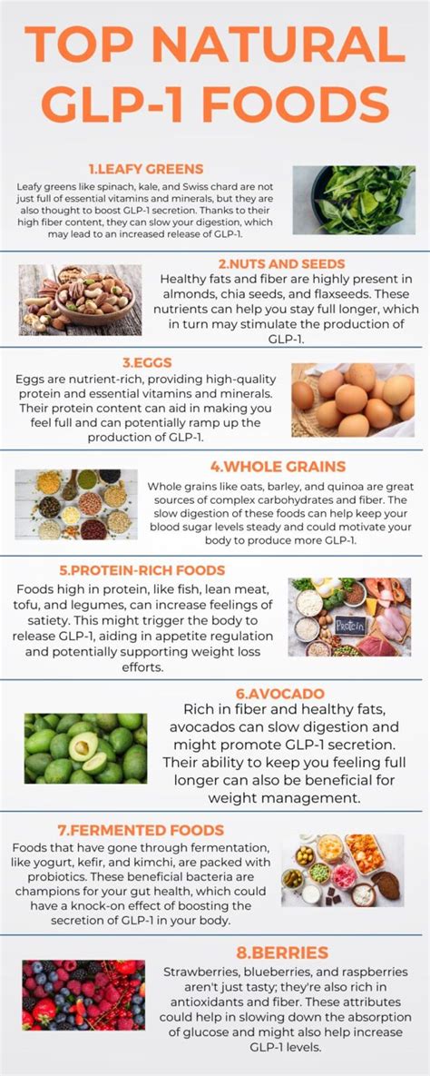 Alright, foodies, let’s talk about the delicious ways you can boost your GLP-1 through your diet! Did you know that what you eat has a direct impact on your GLP-1 levels? We’re talking about incorporating some tasty and healthy options into your daily meals. Firstly, fiber-rich foods are your new best friends. Soluble fiber, specifically, slows down digestion and the absorption of glucose, which encourages your body to release more GLP-1. Think of oats, beans, lentils, and apples. These are fantastic choices that keep you feeling full and your GLP-1 levels happy. Next up, embrace the power of probiotics. Probiotics are the good bacteria found in fermented foods like yogurt, kefir, sauerkraut, and kimchi. These beneficial bacteria in your gut can influence GLP-1 secretion. By improving gut health, probiotics can indirectly support GLP-1 production. Don’t shy away from healthy fats. Foods rich in monounsaturated and polyunsaturated fats – like avocados, olive oil, nuts, and fatty fish – can also help. These fats not only keep you feeling satisfied but also support overall metabolic health, which is essential for optimal GLP-1 function. Finally, consider incorporating foods high in certain amino acids, such as arginine and glutamine. These amino acids are found in foods like lean meats, eggs, and dairy products. They are believed to stimulate GLP-1 release. So, by smartly choosing your meals and snacks, you can naturally and deliciously boost your GLP-1 levels.