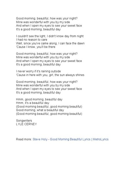 In wrapping things up, my friends , it’s clear that beautiful morning song lyrics hold a truly special place in our hearts and in the vast landscape of music. From the profound emotion they evoke to their capacity for fostering community and even their role in the digital world through SEO, these lyrical creations are far more than just words set to music. They are narratives of hope, declarations of peace, and vibrant tapestries woven with the threads of dawn. We’ve explored how songwriters meticulously craft these verses, transforming the universal experience of a new day into deeply personal and resonant art, using sensory details, vivid imagery, and clever literary devices. We’ve seen how a casual phrase or a poignant line can become an anthem, a source of daily inspiration for countless individuals. And for those of us who appreciate the subtle art of language, understanding the effort behind optimizing lyrical content for discoverability ensures these gems reach the ears and hearts they are meant for. Ultimately, the enduring harmony between a beautiful morning and a perfectly crafted melody reminds us of music’s profound ability to interpret, elevate, and celebrate the human experience. So, the next time the sun rises, casting its gentle glow upon your world, take a moment. Listen to the quiet symphony, feel the fresh air, and perhaps hum a tune or recall a lyric that truly captures that perfect moment. For in those words, whether sung by an artist or whispered by your own thoughts, lies the timeless magic of a beautiful morning song .