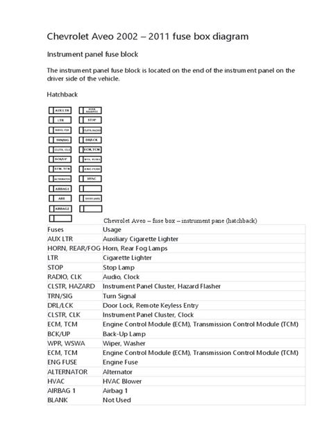 Chevrolet Aveo Fuse Guide