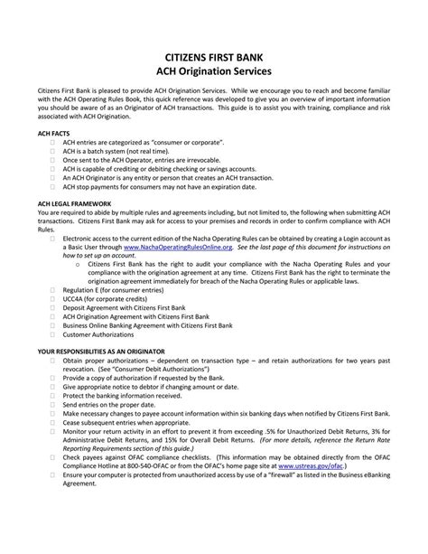 By following these security tips, you can significantly reduce the risk of fraud and unauthorized access to your Citizens Bank account. Remember, it’s better to be proactive and take precautions than to deal with the consequences of a security breach. In addition to these tips, it’s also important to be mindful of the websites and links you click on. Avoid clicking on suspicious links or visiting unsecured websites, as these can be sources of malware or phishing scams. Additionally, be cautious when using public Wi-Fi networks, as these networks are often unsecured and can make your data vulnerable to hackers. When in doubt, it’s always best to err on the side of caution and avoid accessing sensitive information on public networks. By staying vigilant and following these security best practices, you can ensure that your Citizens Bank ACH transfers remain safe and secure.