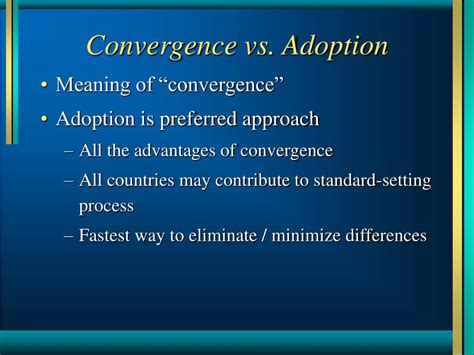 Okay, so what is convergence ? Think of it as a journey toward a common goal. Instead of simply adopting IFRS, countries work to align their national accounting standards with IFRS over time. It’s a process of gradually making your local rules more similar to the global standards. This can involve adopting specific IFRS standards, modifying existing standards to be consistent with IFRS, or developing new standards that are compatible with IFRS. The focus is on finding common ground and achieving comparability without necessarily forcing a complete overhaul of the existing system. This is a much softer approach. The goal is to reduce differences in accounting practices, making financial statements more comparable while still respecting the unique aspects of each country’s environment. Convergence is all about flexibility and collaboration.