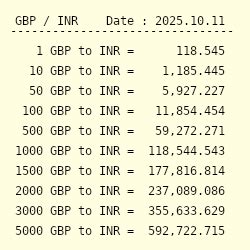 To get the theoretical maximum INR you could receive, you’d simply multiply the GBP amount by this rate:
