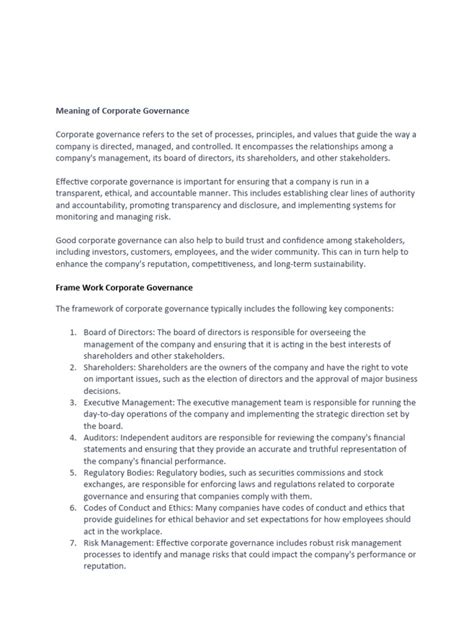 Hey everyone, let’s dive deep into the world of corporate governance auditing . If you’re looking to get a solid understanding of this critical area, you’ve come to the right place. We’re going to break down what corporate governance auditing is all about, why it’s super important for businesses today, and how you can get your hands on valuable resources like a corporate governance auditing PDF . Think of this as your go-to guide to making sure companies are run ethically, transparently, and effectively. It’s not just about ticking boxes; it’s about building trust, ensuring accountability, and ultimately, driving sustainable success. So, grab a coffee, settle in, and let’s get started on unraveling the intricacies of auditing corporate governance.