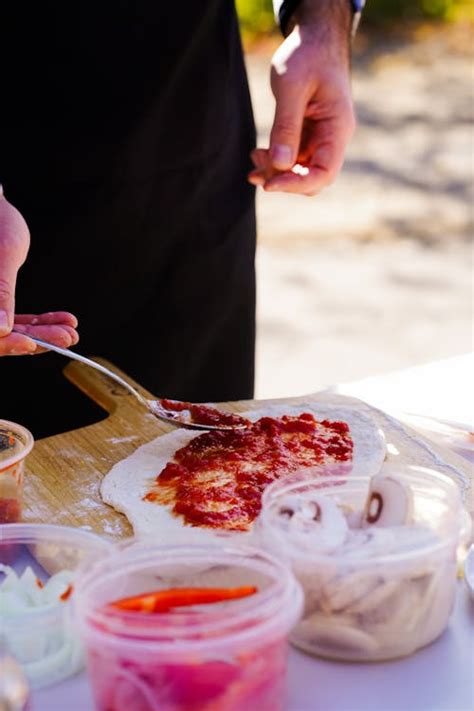 - Add the Toppings: Spread a thin layer of sauce over the dough, leaving a small border for the crust. Add your desired toppings, starting with the cheese and then layering on the vegetables, meats, and herbs. Be careful not to overload the pizza, as this can make it difficult to cook properly.