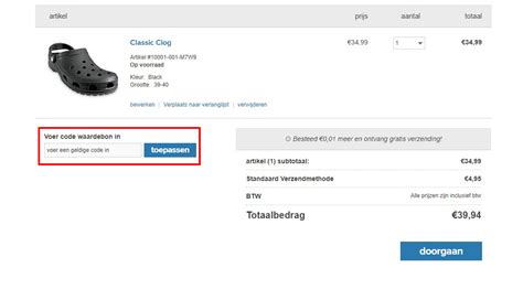 Het gebruiken van een Crocs NL kortingscode is super eenvoudig, jongens! Echt waar, je hebt geen universitaire graad nodig om dit te fixen. Volg gewoon deze stappen en je bespaart binnen no-time geld. Allereerst, zorg ervoor dat je de kortingscode hebt die je wilt gebruiken. Dit kan een code zijn die je hebt gevonden op een kortingswebsite, in een nieuwsbrief, op social media, of misschien wel een persoonlijke code die je per e-mail hebt ontvangen. Kopieer de code naar je klembord. Ga vervolgens naar de officiële Crocs Nederland webshop of de Crocs-pagina van een geautoriseerde retailer waar je je aankoop wilt doen. Blader door de collectie en voeg de Crocs naar keuze toe aan je winkelwagentje. Ga daarna naar je winkelwagentje om je bestelling te controleren en af te ronden. Hier komt het cruciale punt: zoek naar het veld waar je je kortingscode kunt invoeren. Dit veld heeft vaak een naam als ‘Kortingscode’, ‘Promotiecode’, ‘Couponcode’ of iets soortgelijks. Het bevindt zich meestal in de buurt van het totaalbedrag van je bestelling, voordat je overgaat tot betalen. Plak de gekopieerde kortingscode in dit veld en klik op de knop om de code toe te passen (vaak ‘Toepassen’, ‘Verzilveren’ of ‘Apply’). Als de code geldig is en voldoet aan de voorwaarden (zoals een minimale bestelwaarde of specificaties voor bepaalde producten), zal het totaalbedrag van je bestelling direct worden verlaagd. Je ziet dan het nieuwe, lagere bedrag verschijnen. Controleer nogmaals of de korting correct is toegepast voordat je verdergaat met de betaling. Zo simpel is het! Je hebt nu succesvol gebruikgemaakt van je Crocs NL kortingscode en je schoenen tegen een gereduceerde prijs gekocht. Het is altijd verstandig om de voorwaarden van de kortingscode goed door te lezen voordat je begint. Staat er bijvoorbeeld bij dat de code alleen geldig is voor nieuwe klanten, of dat hij niet gecombineerd kan worden met andere aanbiedingen? Dit soort details kunnen je teleurstelling besparen. Maar over het algemeen is het proces vrij gestroomlijnd en ontworpen om je zo gemakkelijk mogelijk te laten besparen. Dus, ga ervoor en geniet van je nieuwe, voordelige Crocs!