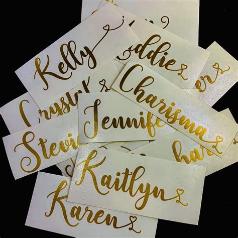 Want your custom name stickers to stick around (pun intended!)? Here are some tips to ensure they stay put and look great for as long as possible: First, prepare the surface . Before applying your sticker, make sure the surface is clean, dry, and free of dust, dirt, and grease. Use a mild soap and water solution to clean the surface, then dry it thoroughly with a clean cloth. Apply pressure . When applying your sticker, press it firmly onto the surface, starting from one edge and working your way across. Use your fingers or a squeegee to smooth out any air bubbles and ensure a strong bond. Avoid extreme temperatures . Extreme heat or cold can weaken the adhesive on your sticker, causing it to peel or fade. Avoid exposing your stickers to direct sunlight, hot car interiors, or freezing temperatures. Protect from moisture . While some stickers are waterproof, prolonged exposure to moisture can still damage them. Avoid getting your stickers wet, and wipe them dry if they do get wet. Choose the right adhesive . When ordering your stickers, consider the type of adhesive used. Some adhesives are stronger than others, and some are designed for specific surfaces. Choose an adhesive that is appropriate for the intended use of your stickers. Consider lamination . Laminating your stickers can provide an extra layer of protection against scratches, fading, and moisture. Lamination can also enhance the appearance of your stickers, making them more vibrant and glossy. By following these tips, you can help your custom name stickers stay put and look great for years to come.