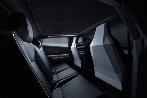 The materials and design aesthetics of the Cybertruck interior back seat play a significant role in its overall appeal. Tesla has opted for a minimalist approach, focusing on durable and sustainable materials that align with the vehicle’s rugged character. The seating surfaces are typically made from a synthetic leather material that is both comfortable and easy to clean. This material is designed to withstand the rigors of daily use while providing a premium feel. The color palette is generally subdued, with neutral tones that complement the stainless steel exterior of the Cybertruck . This minimalist color scheme creates a sense of spaciousness and sophistication, enhancing the overall interior design. The dashboard and door panels are made from durable, high-quality plastics that are designed to withstand wear and tear. These materials are carefully selected to ensure they meet Tesla’s standards for quality and durability. The overall design aesthetic is clean and uncluttered, with simple lines and a focus on functionality. There are no unnecessary embellishments or decorative elements; instead, the emphasis is on creating a practical and user-friendly space. The minimalist design extends to the lighting as well. The Cybertruck features LED lighting throughout the cabin, providing ample illumination while consuming minimal energy. The lighting is carefully positioned to create a comfortable and inviting atmosphere, enhancing the overall interior experience. Furthermore, the integration of technology into the design is seamless. The large touchscreen display dominates the dashboard, providing access to all of the vehicle’s functions and settings. The minimalist design of the interface complements the overall aesthetic, creating a cohesive and modern look. Tesla’s commitment to quality materials and minimalist design ensures that the Cybertruck’s back seat is both visually appealing and highly functional, contributing to a refined and practical interior space.