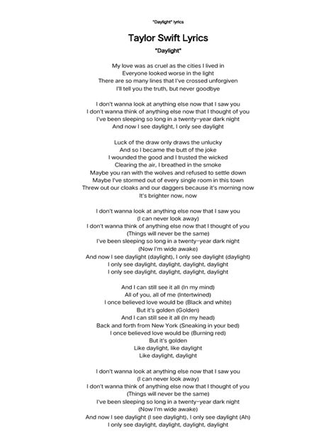 Daylight Lyrics: Exploring Meaning And Interpretations
