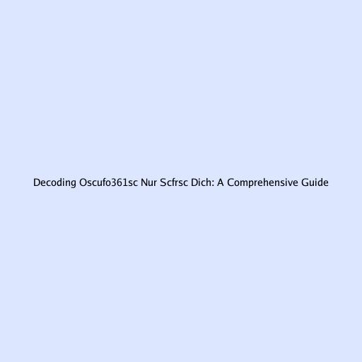 Decoding oscufo361sc nur scfrsc dich: A Comprehensive Guide