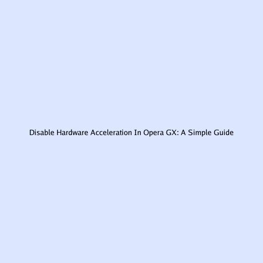 Step-by-Step Guide to Disabling Hardware Acceleration in Opera GX