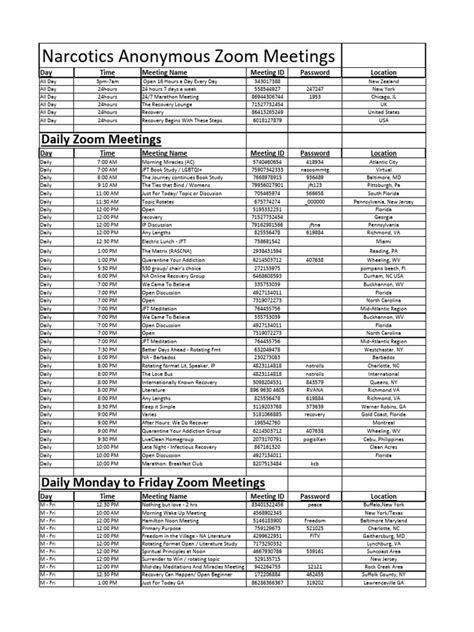 Okay, so you’re sold on the idea of International Zoom NA meetings . Awesome! But how do you actually find and attend one? Don’t worry, it’s easier than you think. The first thing you’ll want to do is head over to the official Narcotics Anonymous website. This is your go-to source for all things NA, including meeting schedules, resources, and information. On the website, you should be able to find a section dedicated to online meetings, or you can use the search function to look for Zoom meetings specifically. Make sure to check the time zones to ensure that the meeting times work for your location. You don’t want to accidentally wake up at 3 AM for a meeting! Once you’ve found a meeting that fits your schedule, you’ll usually find the Zoom meeting link and password listed on the website. Sometimes, you might need to register or create an account to access the meeting details, but it’s usually a quick and simple process. Before the meeting starts, make sure you have the Zoom app installed on your device. You can download it for free on your computer, tablet, or smartphone. Test your microphone and camera to make sure everything is working properly. There’s nothing worse than joining a meeting and realizing that no one can hear you! When it’s time for the meeting, simply click on the Zoom link and enter the password. You’ll be placed in a virtual waiting room until the meeting host admits you. Once you’re in the meeting, you’ll be able to see and hear the other participants. It’s a good idea to introduce yourself when you first join the meeting, but there’s no pressure to share anything you’re not comfortable with. Just let the other members know that you’re new and that you’re there to listen and learn. During the meeting, you can participate as much or as little as you like. Most meetings follow a specific format, with readings, sharing, and discussions. Feel free to share your thoughts, ask questions, or simply listen to what others have to say. Remember, everyone in the meeting is there to support each other, so don’t be afraid to speak up. And finally, be respectful of the other participants and the meeting guidelines. Treat everyone with kindness and empathy, and avoid interrupting or talking over others. The goal is to create a safe and supportive environment for everyone. Finding and attending International Zoom NA meetings is a simple process, but it can be a life-changing one. So, take the leap, find a meeting, and start connecting with others who understand what you’re going through.