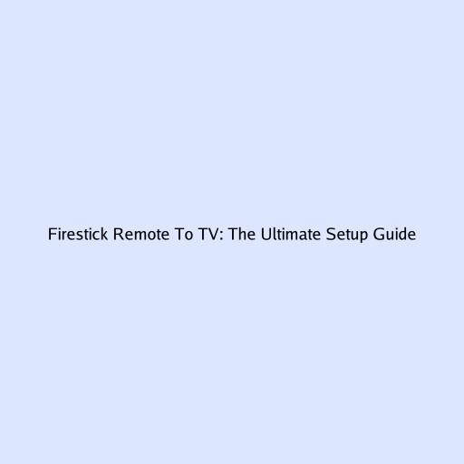 Firestick Remote to TV: The Ultimate Setup Guide