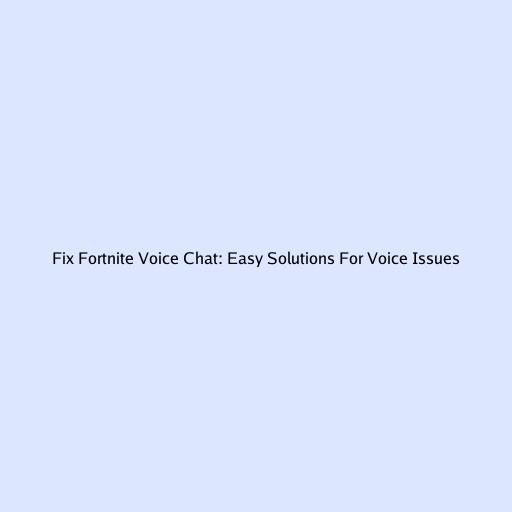 Fix Fortnite Voice Chat: Easy Solutions For Voice Issues