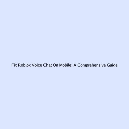 How to Fix Roblox Voice Chat on Mobile: A Comprehensive Guide