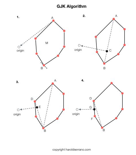 Okay, so the beating heart of the GJK algorithm, the truly genius insight that makes it all tick, is something called the Minkowski Difference . Now, don’t let the fancy name scare you off, guys, because once you grasp this concept, the rest of GJK starts to fall into place like magic. Imagine you have two convex objects, let’s call them object A and object B. The big question GJK needs to answer is: Are A and B overlapping? Instead of trying to compare every point of A against every point of B, which would be incredibly inefficient, the Minkowski difference offers a much smarter way. Here’s the deal: the Minkowski difference of two shapes, A and B, is essentially the set of all possible differences between a point in A and a point in B. Mathematically, it’s A - B = {a - b | a ∈ A, b ∈ B} . What does this mean in plain English? It’s like taking every single point a from object A and subtracting every single point b from object B, and then plotting all those resulting difference vectors. The shape formed by all these difference vectors is the Minkowski difference. Now, here’s the super important part , the key to GJK’s efficiency: objects A and B are colliding if and only if the origin (the point (0,0,0) in your coordinate system) is contained within their Minkowski difference (A - B). Think about it this way: if A and B are overlapping, it means there’s at least one point p that belongs to both A and B. So, p ∈ A and p ∈ B . If that’s the case, then p - p = 0 (the origin) is one of the possible differences, and thus the origin must be inside the Minkowski difference. Conversely, if the origin is inside the Minkowski difference, it means there exists some a ∈ A and b ∈ B such that a - b = 0 , which implies a = b . This means there’s a point that exists in both shapes, confirming a collision! This transformation allows GJK to boil down a complex collision detection problem between two arbitrary convex shapes into a much simpler problem: does a single point (the origin) lie within another single, potentially very complex, shape (the Minkowski difference)? This simplification is incredibly powerful because checking for origin containment within a single shape is a problem that can be solved very efficiently, especially using the iterative simplex-building method that GJK employs. It completely re-frames the problem, turning a multi-object interaction into a single-object geometric query. This fundamental concept is what gives GJK its analytical power and why it’s so highly regarded in real-time collision detection systems.