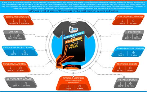 Okay, now for the nitty-gritty: the heat press shirts temperature settings! Here’s a handy guide, but always check the manufacturer’s recommendations for your specific materials and transfers. They usually have the most accurate info. These are the general guidelines to follow: