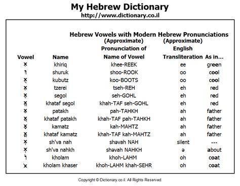 Okay, so we’ve tackled the consonants, which are like the sturdy frame of your Hebrew name. Now, let’s talk about the vowels, the soul of the sound that really brings it to life. In Hebrew, vowels are often represented by a system called nikkud , which uses little dots and dashes. These guys are super important because they tell you exactly how to pronounce the word. Without them, especially for learners, it can be a guessing game. The most common vowel sounds we’ll encounter are represented by symbols like kamatz (ָ ), patach (ַ ), tzerei (ֵ ), segol (ֶ ), chirik (ִ ), cholam (ֹ ), and shuruk (וּ ) or kubutz (ֻ ). For example, the kamatz and patach often represent an ‘ah’ sound, similar to the ‘a’ in ‘father’. The tzerei and segol usually sound like ‘eh’ in ‘bet’, while the chirik is a sharp ‘ee’ sound like in ‘see’. The cholam is like the ‘o’ in ‘go’, and the shuruk or kibutz give you an ‘oo’ sound like in ‘moon’. Now, here’s the kicker: in many modern Hebrew texts, especially newspapers and books, these nikkud are left out. This is where context and familiarity come into play. Native speakers can usually tell the correct pronunciation because they know the word. For learners, this can be a real challenge! That’s why listening to native speakers is crucial . Pay attention to how they elongate certain vowel sounds or how they subtly change them. For instance, the difference between segol (ֶ) and patach (ַ) might seem small, but it can change the entire meaning of a word. Also, keep an ear out for variations in pronunciation. Just like in English, there can be regional accents or slight differences in how people pronounce things. Don’t get too hung up on perfection right away. The goal is clarity and understanding. Hebrew name pronunciation relies heavily on getting these vowel sounds right, even if the nikkud aren’t always there. Practice saying words aloud, focusing on these vowel sounds. Try to mimic recordings of Hebrew speakers. You can find tons of resources online for this. Remember, vowels give your name its melody and emotion. So, embrace the nikkud , listen carefully, and let your Hebrew names sing!