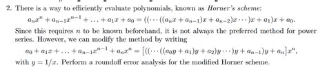Imagine you have a polynomial like this: P(x) = a_n*x^n + a_{n-1}*x^{n-1} + ... + a_1*x + a_0 . Instead of directly plugging in a value for x and crunching through all those exponents, Horner’s Scheme rewrites it as: