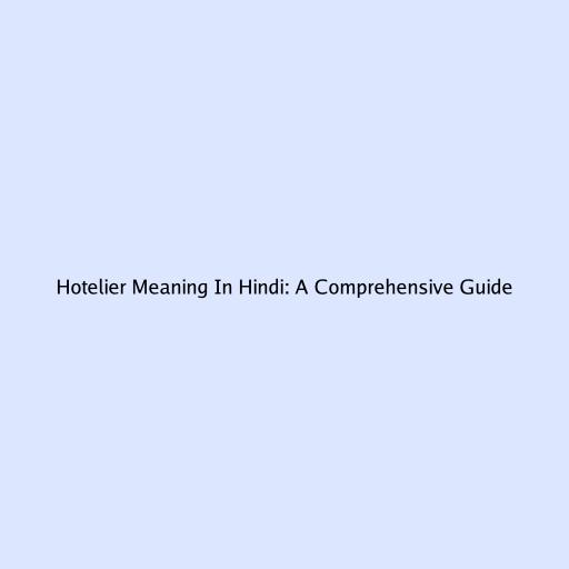 Hotelier Meaning in Hindi: A Comprehensive Guide