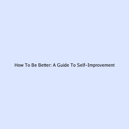 How To Be Better: A Guide To Self-Improvement