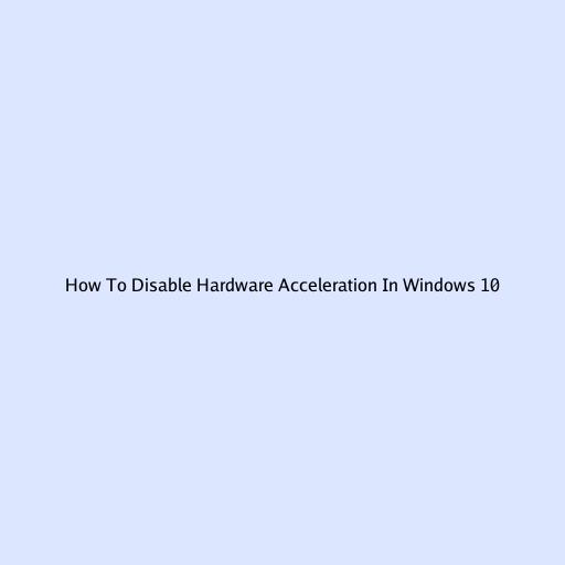 Hey guys! Ever feel like your computer is lagging or acting a bit wonky, especially when you’re trying to watch videos or play games? Sometimes, the culprit behind these performance hiccups isn’t what you’d expect. It could be hardware acceleration . Now, I know that sounds super techy, but don’t worry, we’re going to break it down. In this article, we’ll dive deep into what hardware acceleration is, why you might want to disable it, and more importantly, how to disable hardware acceleration in Windows 10 . We’ll cover this for various applications, from your web browser to specific Windows settings, making sure you can get your PC running smoothly again. So, buckle up, and let’s get this performance boost sorted!