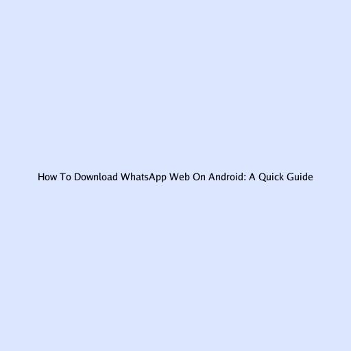 How To Download WhatsApp Web On Android: A Quick Guide
