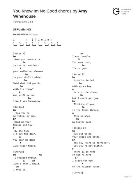 Alright, let’s get into the actual song structure. The verse of “I Know I’m No Good” is where Amy Winehouse really sets the scene with her lyrics, and the chords provide that perfect, slightly brooding backdrop. The main progression you’ll hear in the verses is pretty consistent and uses our core chords. Get ready to strum: Dm - G - C - F . You’ll repeat this sequence quite a bit throughout the verses. Let’s break down how it feels. You start on Dm , which immediately gives that introspective, slightly sad vibe. Then you move to G , which offers a bit of a lift, a moment of questioning or reflection. Following that, C provides a sense of stability or a brief resolution. Finally, F leads you back towards the Dm, creating a cyclical, almost unresolved feeling that perfectly matches the lyrical themes of regret and complicated relationships. The rhythm here is key. Amy’s vocal delivery is often quite syncopated, so try to match that laid-back, slightly behind-the-beat feel. A simple down-down-up-up-down-up strumming pattern can work wonders. So, for each chord (Dm, G, C, F), you might strum something like: Strum, Strum, Down-Up, Up-Down-Up . Play around with it! The important thing is to keep the rhythm steady and let the chords ring out. This progression is what gives the song its signature soulful and slightly melancholic sound. It’s not overly complex, making it super accessible for players of all levels. You’ll notice that the F chord at the end of the progression often feels like it’s pulling you back to the Dm , creating a continuous loop that mirrors the lyrical content. This isn’t about finding a happy ending; it’s about dwelling in the complexity of the situation. The repetition allows you to really sink into the groove and focus on your strumming dynamics and vocal delivery (if you’re singing along!). Don’t be afraid to experiment with palm muting slightly on some strums to add a percussive element, or let the chords ring out fully to emphasize certain points. The beauty of this progression is its deceptive simplicity. It sounds complex and emotionally rich, but the underlying chords are ones many players are already familiar with. Mastering this verse progression is your first major win in learning “I Know I’m No Good.” Keep practicing it until it feels natural, and you’ll be halfway to nailing the whole song. Remember to listen closely to the record to catch the nuances in Amy’s timing and the overall feel of the instrumentation. That’s where the real magic lies! This Dm-G-C-F loop is the heart of the song’s emotional landscape.