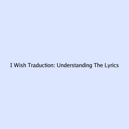 Hey guys! Ever stumbled upon a song that just hits different and you find yourself wanting to know what the heck the lyrics actually mean? Well, today we’re diving deep into the “I Wish Traduction” , breaking down the lyrics of that iconic song that’s been stuck in your head. We’re going to unravel the meaning, explore the emotions, and maybe even learn a thing or two about expressing your desires through song. So, grab your headphones, get comfy, and let’s get started on this lyrical journey. We’ll explore not just the literal translation but also the cultural nuances and the feelings the songwriter poured into every word. This isn’t just about understanding a few phrases; it’s about connecting with the artist’s message on a deeper level. Get ready to feel the music and the meaning like never before!