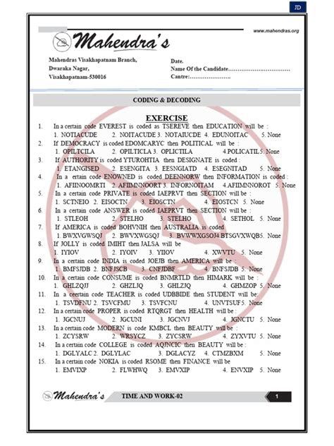 Indiabix has a fantastic collection of coding and decoding questions , and they tend to fall into a few major categories. Knowing these categories will help you approach each problem with a strategy. First up, we have Letter Coding . This is where letters are replaced by other letters or symbols according to a specific rule. The rule could be a simple shift (like A becomes B, B becomes C), a reversal of the alphabet, or something more complex involving pairs of letters. Then there’s Number Coding . Here, words are converted into numbers, or numbers are converted into words. This often involves the positional value of letters (A=1, B=2, etc.), adding or subtracting values, or even more intricate mathematical operations based on the letters in the word. Sometimes, you’ll encounter Mixed Letter and Number Coding , which combines elements of both. You might see a word coded as a mix of letters and numbers, requiring you to decipher multiple rules simultaneously. Another type is Symbol Coding , where letters or words are represented by specific symbols. This is pure pattern recognition, where you need to figure out which symbol corresponds to which letter or word. Finally, Indiabix often includes Conditional Coding or Pattern Coding questions. These might involve a set of rules that change based on certain conditions, or patterns that evolve over a series of steps. The key to all these is meticulous observation and a systematic approach. Don’t just guess; try to identify the rule, test it with other examples if provided, and then apply it.