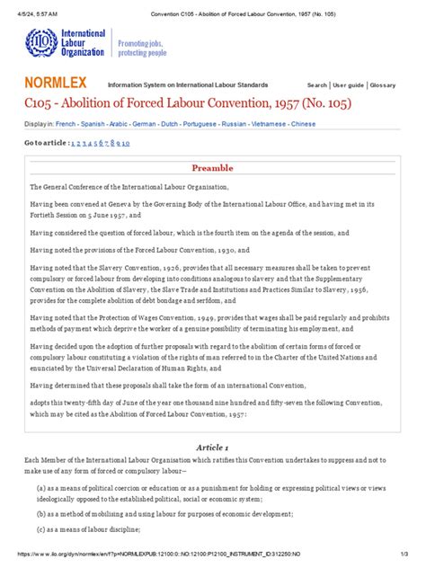 Hey everyone, let’s dive into something super important today: ILO Convention 105 , also known as the Abolition of Forced Labour Convention . You might be thinking, “Forced labour? Isn’t that, like, ancient history?” Well, guys, believe it or not, it’s still a massive issue worldwide, and understanding this convention is key to fighting it. So, buckle up, because we’re going to break down what ILO C 105 is all about, why it matters, and how it’s shaping a more just and equitable world for everyone. We’ll explore its core principles, its historical context, and the ongoing challenges in its implementation. By the end of this, you’ll have a solid grasp of this crucial international labor standard and its impact on human rights.