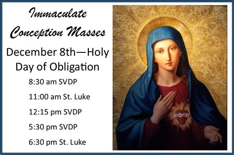 Now, let’s get to the heart of the matter for most people: the weekend masses at Immaculate Conception Church . These are the cornerstone of parish life, bringing the community together to celebrate the Eucharist, especially on Saturdays and Sundays. The Saturday evening mass, often called the Vigil Mass, fulfills the Sunday obligation, making it a convenient option for those who can’t attend on Sunday due to work, travel, or other commitments. Then, of course, there are the various Sunday morning masses. Each parish typically offers multiple services on Sunday to accommodate different schedules and preferences. You might find an early morning mass for the early risers, a mid-morning mass that’s often the largest, and perhaps a later morning mass. The Immaculate Conception Church mass schedule for weekends is designed to be as accessible as possible. These weekend celebrations are vibrant and communal, often featuring music, participation from various ministries, and a strong sense of fellowship. It’s a time when families can come together, friends can connect, and the entire parish community can reaffirm their shared faith. Remember, the specific times can vary, so always double-check the official church bulletin or website. But generally, you can expect a good range of options to fit your weekend plans. These masses are more than just obligations; they are joyous celebrations of faith and community. Don’t miss out on the opportunity to be part of these significant gatherings at Immaculate Conception Church!