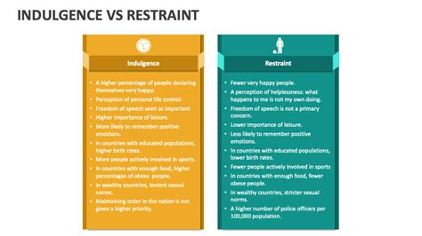 Now, let’s switch gears and talk about restraint . If indulgence is about immediate pleasure, restraint is about delayed gratification and conscious self-control. It’s the voice that says, “Hold on a second, is this really a good idea?” Restraint involves making choices that might feel difficult in the moment but are aligned with our longer-term goals and values. Think about saving money for a down payment on a house instead of buying that new gadget, or hitting the gym even when you’d rather sleep in. Restraint is the foundation of discipline, perseverance, and achieving significant goals. It’s what allows us to build successful careers, maintain healthy relationships, and achieve personal growth. Without restraint, our desires could easily lead us astray, causing us to act impulsively without considering the consequences. The strength derived from restraint is immense. It builds resilience, self-efficacy, and a sense of accomplishment. When you successfully exercise restraint, you prove to yourself that you are in control of your actions, not the other way around. This sense of agency is incredibly empowering. However, too much restraint can also be detrimental. Constant self-denial can lead to burnout, resentment, and a feeling of deprivation, which can ironically lead to a major indulgence later on. It can make life feel rigid, joyless, and overly controlled. The goal isn’t to eliminate all pleasure or spontaneity, but to develop the ability to choose when to indulge and when to exercise restraint in a way that supports our overall well-being. Restraint isn’t about punishment; it’s about making intentional choices that serve our future selves. It’s the conscious decision to prioritize long-term benefits over short-term desires. This requires self-awareness, planning, and a clear understanding of what we truly want to achieve. It’s about setting boundaries for ourselves, both internally and externally. For example, setting a budget is an act of restraint that protects our financial future. Committing to a regular exercise routine, even on days we don’t feel like it, is restraint that builds physical health. Resisting the urge to engage in gossip or negative talk is restraint that preserves our integrity and relationships. The practice of restraint builds mental fortitude and character. It teaches us patience and the value of hard work. It’s the discipline that separates dreams from reality. We learn to tolerate discomfort, to push through challenges, and to understand that true fulfillment often comes from effort and delayed rewards. So, while indulgence offers immediate comfort, restraint offers the potential for lasting achievement and deeper satisfaction. Understanding its importance is crucial for anyone aiming for significant personal or professional growth.