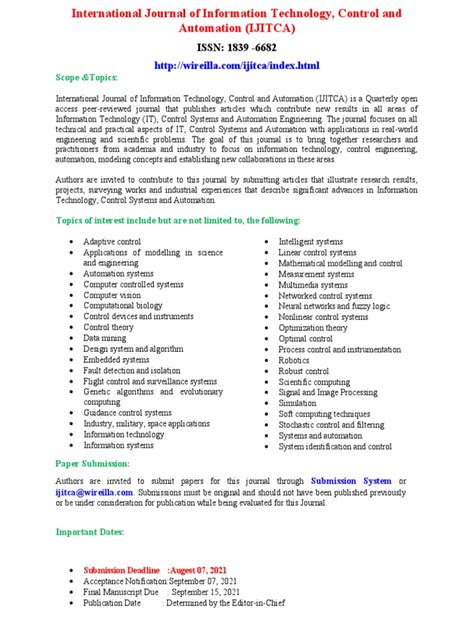 • Setting Standards: By publishing high-quality research, the journal helps to set standards for the field, ensuring that new developments are based on sound scientific principles. The dissemination of cutting-edge research is paramount in today’s rapidly evolving technological landscape, and the Journal of Innovative Computing, Information, and Control plays a critical role in this process. By providing a platform for researchers to share their latest discoveries, the journal ensures that groundbreaking advancements are quickly disseminated to the wider scientific community. This accelerates the pace of innovation and enables other researchers to build upon these findings, leading to even more significant breakthroughs. The journal’s emphasis on originality and novelty ensures that only the most innovative research is published, further enhancing its value to the scientific community. The fostering of collaboration is another key aspect of the journal’s mission, as it recognizes that complex problems often require interdisciplinary solutions. By bringing together experts from diverse fields such as computer science, engineering, and mathematics, the journal facilitates the exchange of ideas and promotes cross-disciplinary collaboration. This can lead to the development of innovative solutions that might not have been possible within a single discipline. The journal’s commitment to collaboration is reflected in its encouragement of joint research projects and its emphasis on the integration of different perspectives. Driving innovation is at the heart of the journal’s mission, as it seeks to push the boundaries of what’s possible in computing, information, and control systems. By publishing research that introduces novel concepts, methods, and applications, the journal inspires others to think creatively and challenge existing paradigms. This can lead to the development of new technologies and applications that have the potential to transform our lives. The journal’s focus on innovation is essential for addressing the complex challenges of the modern world, from enhancing cybersecurity to developing sustainable energy solutions. Setting standards is a crucial function of the journal, as it helps to ensure that new developments in the field are based on sound scientific principles. By publishing high-quality research that has undergone rigorous peer review, the journal establishes a benchmark for excellence and promotes the responsible development of technology. This helps to maintain the integrity of the field and ensures that new advancements are reliable and trustworthy. The journal’s commitment to setting standards is essential for fostering confidence in the technology that we rely on every day.