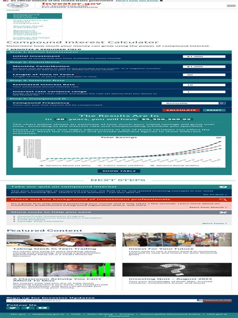 As we’ve discussed, Investor.gov is an invaluable resource for anyone looking to understand and leverage compound interest . They offer a wealth of information, including educational articles, tools, and calculators that can help you make informed decisions. For instance, you can find resources that explain different types of investment accounts, such as IRAs and 401(k)s, detailing how they allow your money to grow through compounding, often with tax advantages. They also provide information on understanding investment fees and the importance of diversification, both of which are critical for maximizing your compound returns. Don’t forget to explore their calculators! These tools can help you project the future value of your investments based on different contribution amounts, interest rates, and time horizons. Seeing those numbers projected can be incredibly motivating and provide a clearer picture of what’s possible. Investor.gov is committed to investor protection and education, offering unbiased information to help you navigate the complexities of the financial markets. By actively utilizing the resources available on Investor.gov, you can gain the knowledge and confidence needed to make smarter investment choices, harness the full potential of compound interest, and move closer to achieving your financial aspirations. It’s your go-to spot for reliable, straightforward financial guidance.