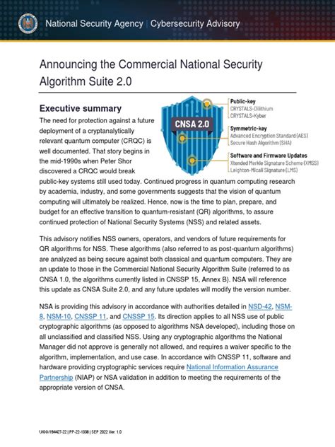 Alright, let’s move onto CNSA security suites . This might sound a bit technical, but it’s crucial for understanding modern cryptographic standards. CNSA stands for Committee on National Security Systems. The CNSA Suite refers to a set of cryptographic algorithms endorsed by the U.S. National Security Agency (NSA) for use in protecting classified and sensitive national security information.