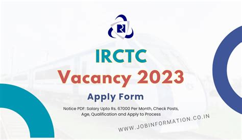 Remember, the specific IRCTC vacancy details, eligibility criteria, and application process will vary for each role and recruitment drive. Always refer to the official notification for the most accurate information.