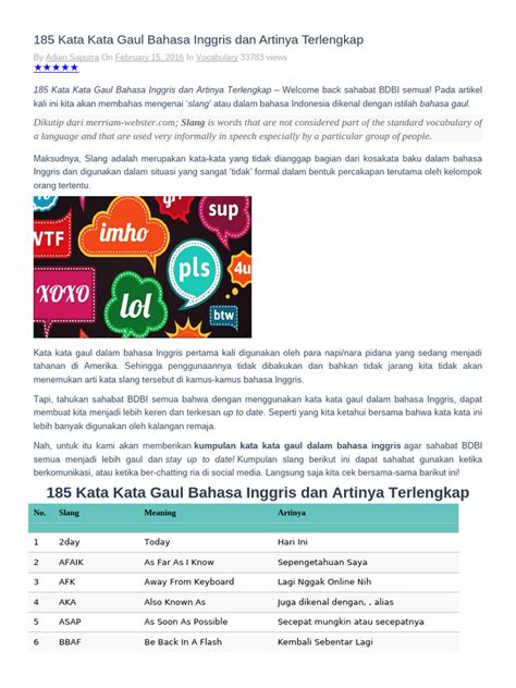 Guys, pernah nggak sih kalian lagi asyik ngobrol sama temen bule atau lagi nonton film Barat, terus tiba-tiba dengerin kata-kata yang nggak familiar? Nah, itu dia yang namanya slang atau bahasa gaul! Bahasa gaul ini penting banget buat dipelajari kalau kalian pengen kelihatan lebih natural dan kekinian pas lagi ngomong bahasa Inggris. Nggak cuma bikin percakapan jadi lebih seru, tapi juga bikin kalian lebih gampang nyambung sama native speaker. Bayangin aja, kalau kalian cuma ngomong pakai bahasa formal terus, pasti bakal kerasa kaku banget, kan? Nah, di artikel ini, kita bakal kupas tuntas berbagai istilah gaul bahasa Inggris yang paling sering dipakai, mulai dari yang umum sampai yang lagi hits banget. Siap-siap deh, vocabulary kalian bakal nambah banyak dan dijamin makin jago ngomong Inggris!