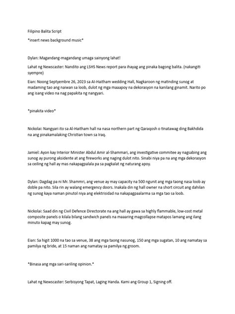 • Regional Differences : If you are covering different regions, adjust your script. (e.g., “Sa Visayas… Sa Mindanao…”)