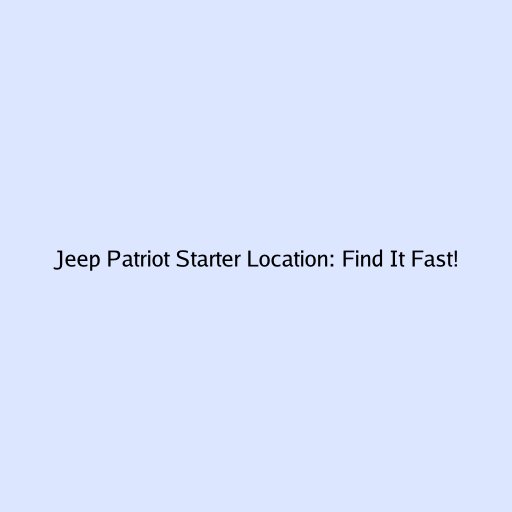 Jeep Patriot Starter Location: Find It Fast!