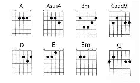 • C (C Major): The C chord is another essential chord. Place your index finger on the first fret of the B string, your middle finger on the second fret of the D string, and your ring finger on the third fret of the A string. Strum all strings except the low E string. The C chord adds a bright and optimistic sound, offering a nice contrast to the Em chord.